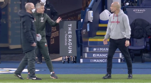 Pep Guardiola and Ole Gunnar Solskjaer clashed on the touchline in a heated row during the Manchester derby.