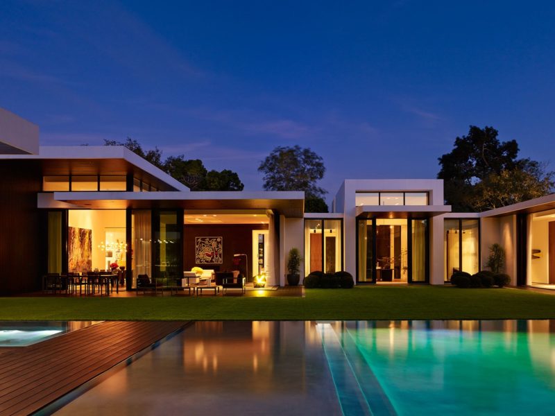 Since this bungalow is located right on the oceanfront on Florida, Rodriguez has fitted the entire exterior of the home with twelve-inch thick impact-resistant glass to withstand hurricanes.
